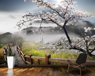 Tranquil Forest Wall Mural / A rainforest wall mural looks awesome in minimalist interiors when joined with wicker furniture and light brown window shades, a stylish lemon tree mural fits such misty forest wall mural.